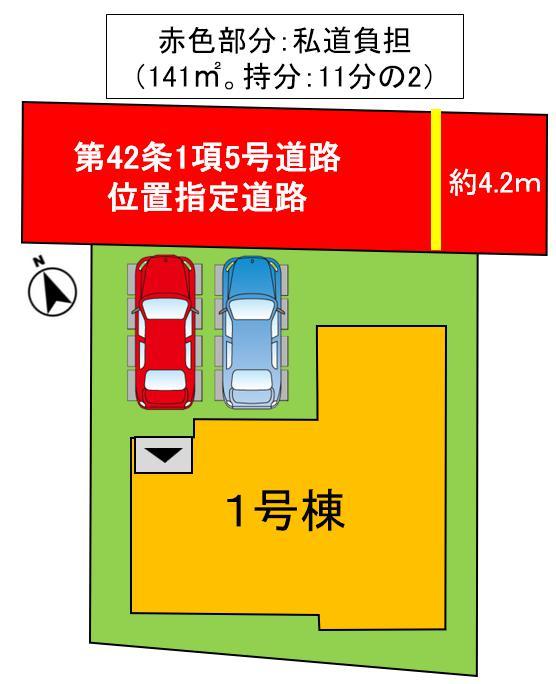 接道1 北 幅4.2m 私道 位置指定有